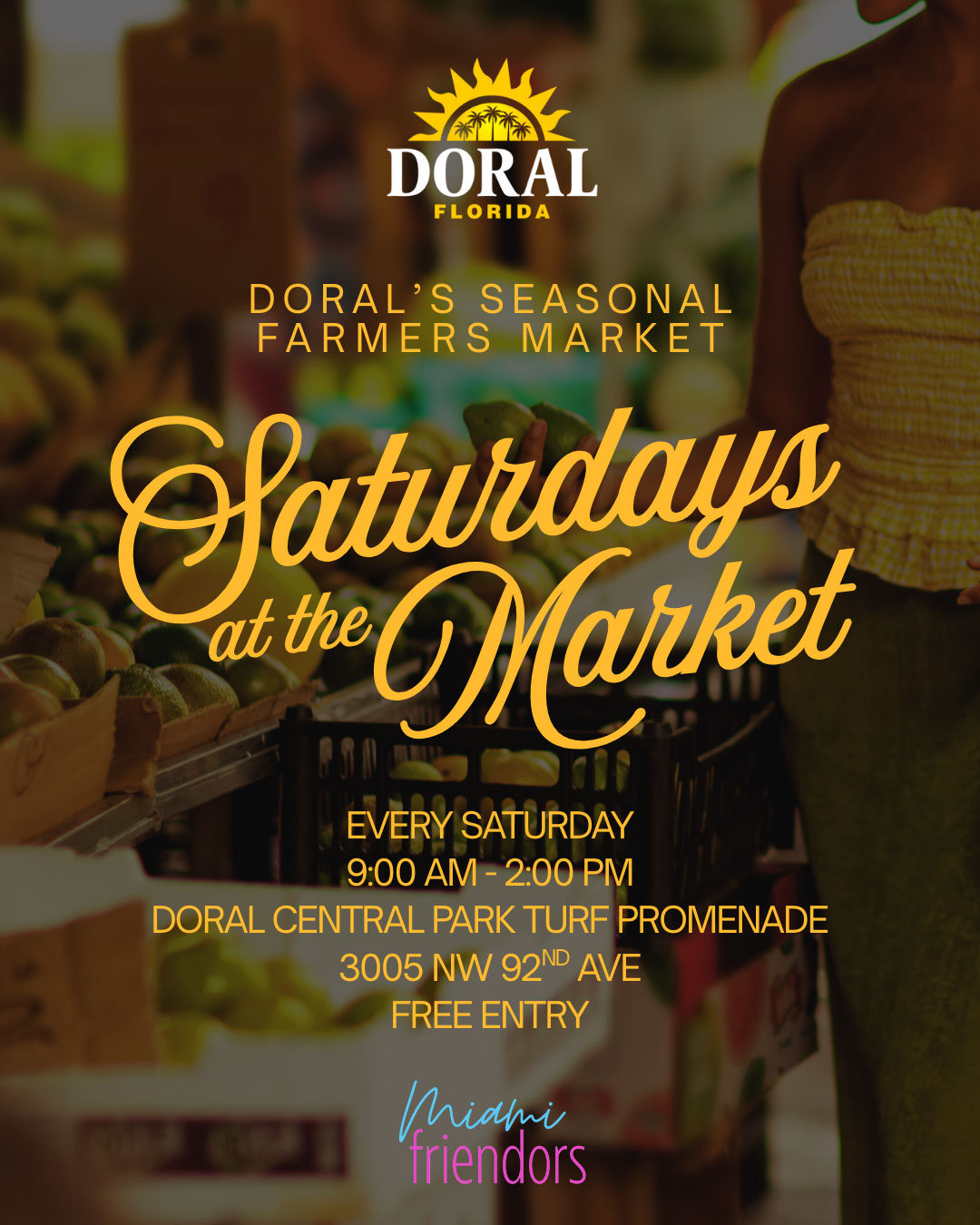 Doral’s Seasonal Farmers Market takes place every Saturday at Doral Central Park Turf Promenade, offering a weekly outdoor gathering centered around local food, artisan goods, and community connection.
