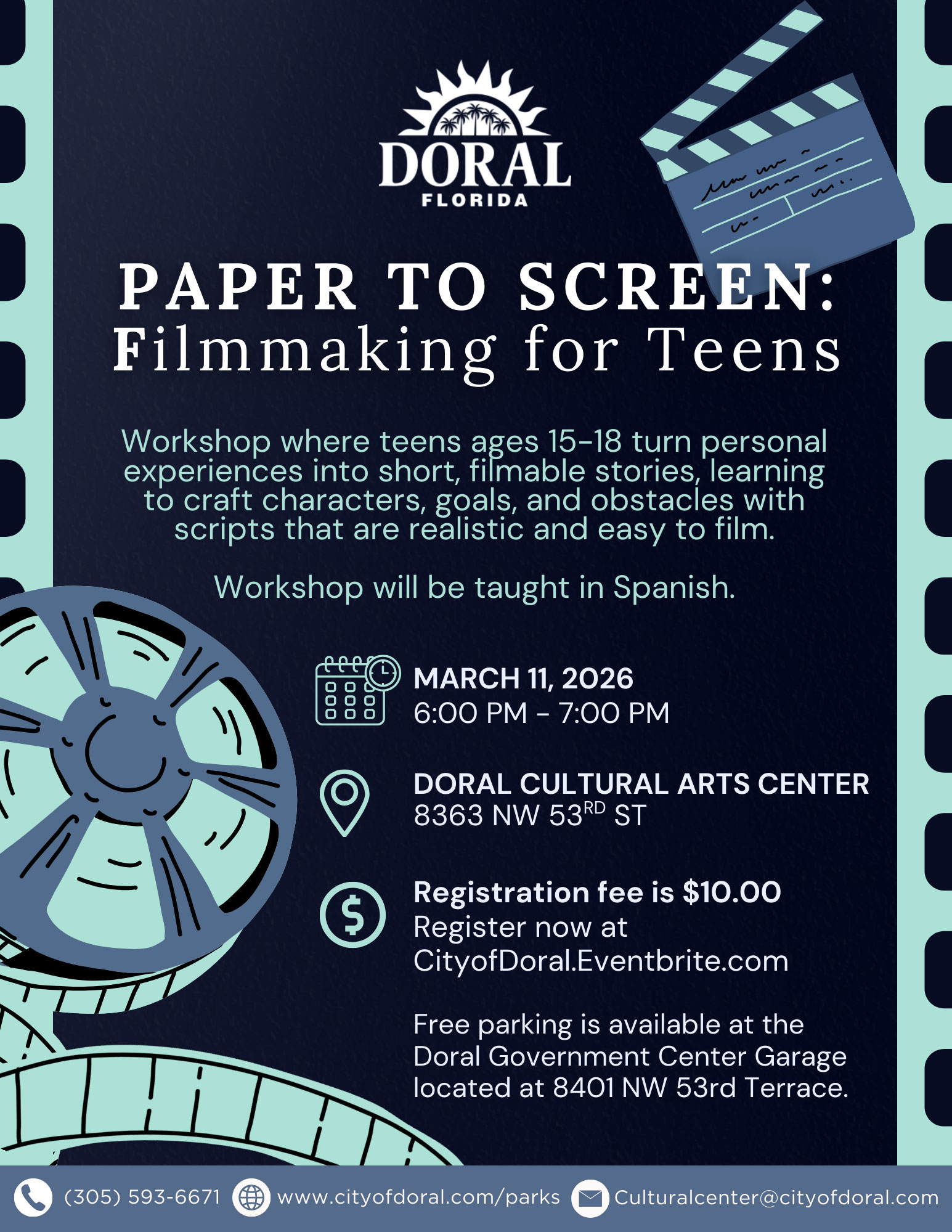 Registration fee is $10.00 per person. To register online, please visit CityofDoral.Eventbrite.com.
