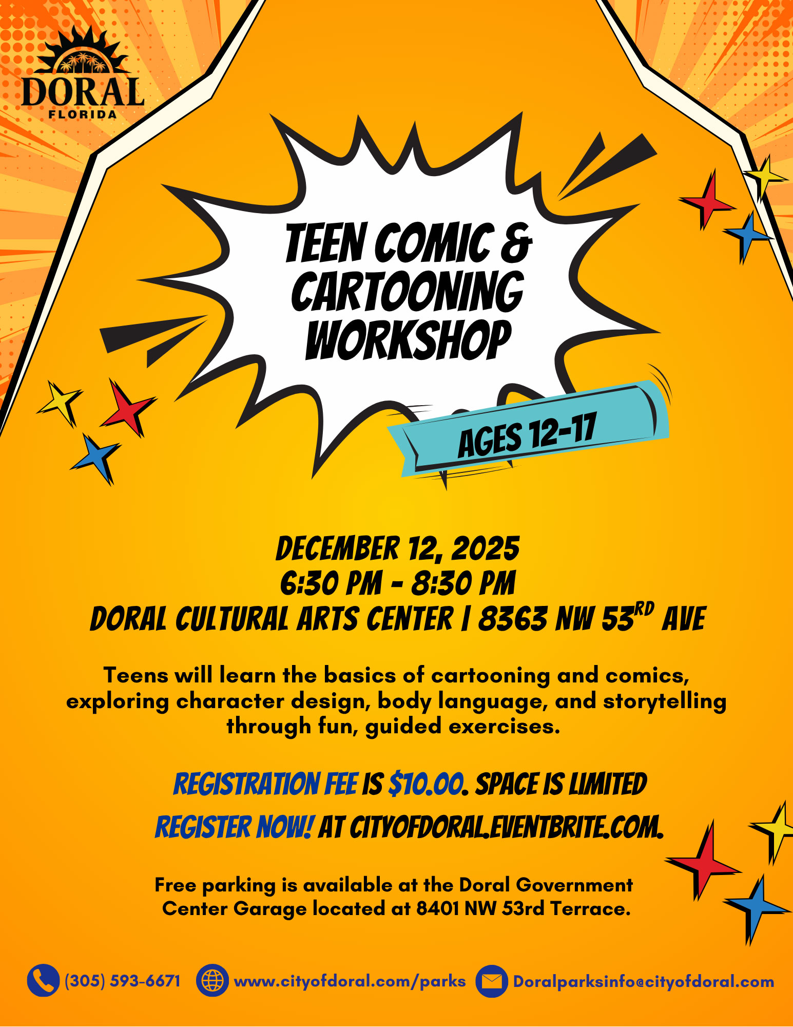 Registration fee is $10.00 per person. Space is limited To register online, please visit CityofDoral.Eventbrite.com.