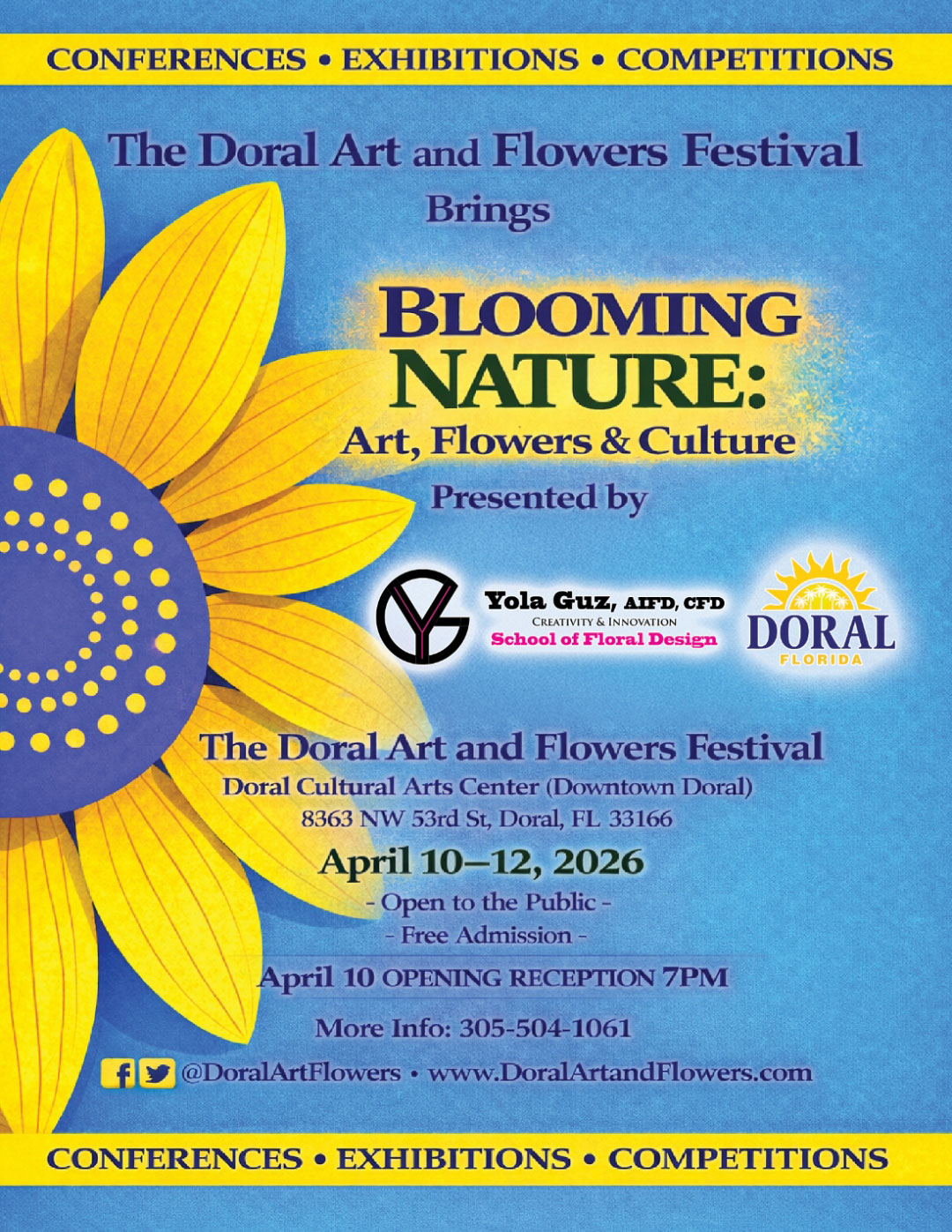 Doral Cultural Arts Center (Downtown Doral) 8363 NW 53rd St, Doral, FL 33166 For more information www.doralartandflowers.com