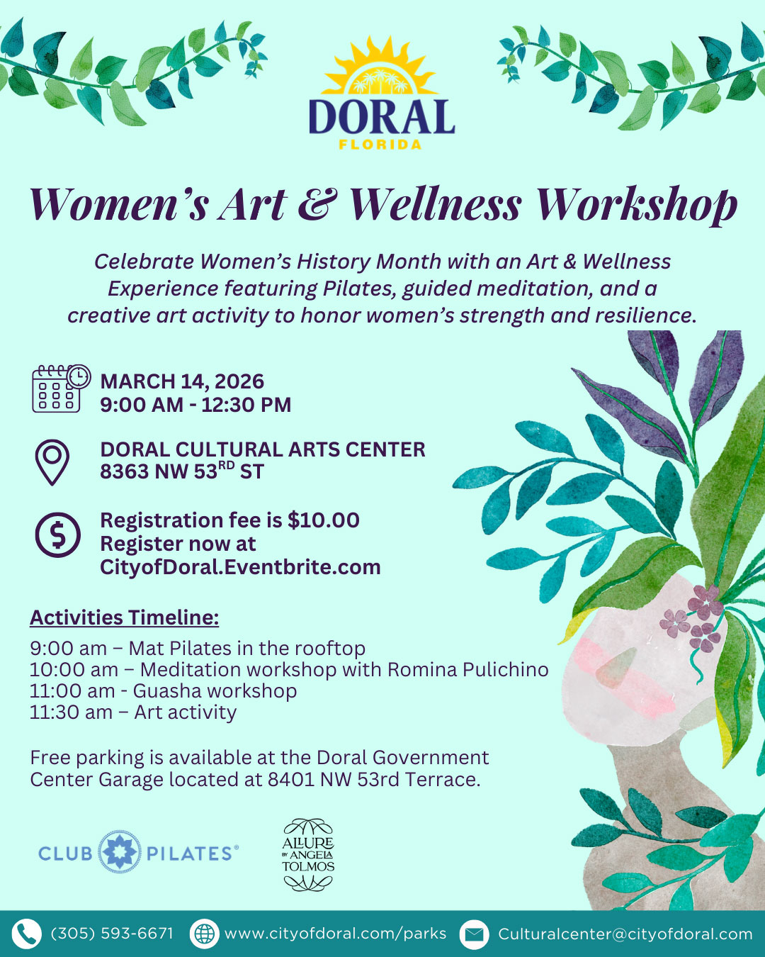 Registration fee is $10.00 per person. To register online, please visit CityofDoral.Eventbrite.com.